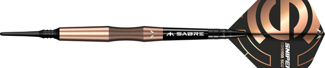 The barrel leads to a Mission Sabre shaft in black which keeps the flight in place. The dart is complete with a black Soft Tip point and the Mission logo is laser-etched into the rear of the barrel.