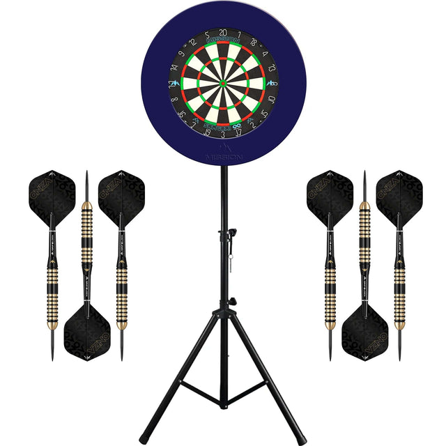 Mission Samurai Infinity Dartboard & Stand Set - Dart Board, Surround, Stand and Darts - Blue is backordered and will ship as soon as it is back in stock.
