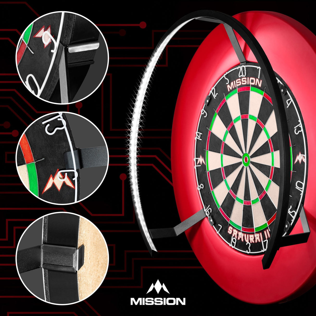 Mission’s attention to detail has led to new and exciting levels of innovation in their products, such as the Mission Torus range of dartboard lights. The Mission Torus 270 has a unique 270-degree shape which gives you easy access to retrieve your darts during play, making it an ideal choice for young players.