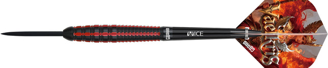 One80 Vaelkris Darts - Steel Tip - 90% Tungsten - V05 - 25g. Inspired by the mythic strength and precision of the Valkyries, the Vaelkris range is built for players who demand absolute control under pressure. Each barrel in the range combines bold aesthetics with purpose-driven grip design, delivering confidence at release and stability through every phase of the throw. Finished in a striking black and crimson colourway, Vaelkris darts feature aggressive, multi-zoned machining that locks into the fingers without feeling restrictive. Whether you prefer a straight, uniform profile or a more contoured shape, every Vaelkris model is engineered to provide repeatable grip reference points and a powerful, assured release. Available in steel tip and soft tip, the Vaelkris range is designed for competitive players who want their equipment to look as fearless as it performs.